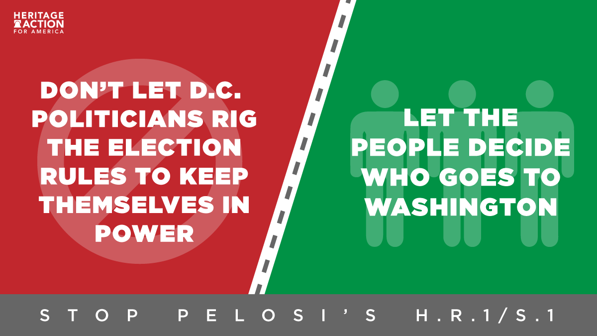 H.R. 1 / S. 1 would federalize our election processes, which are currently run by the states — This is D.C. politicians' way of trying to make sure the game is rigged in their favor. Politicians already in Washington should not be choosing who goes to Washington—voters should!